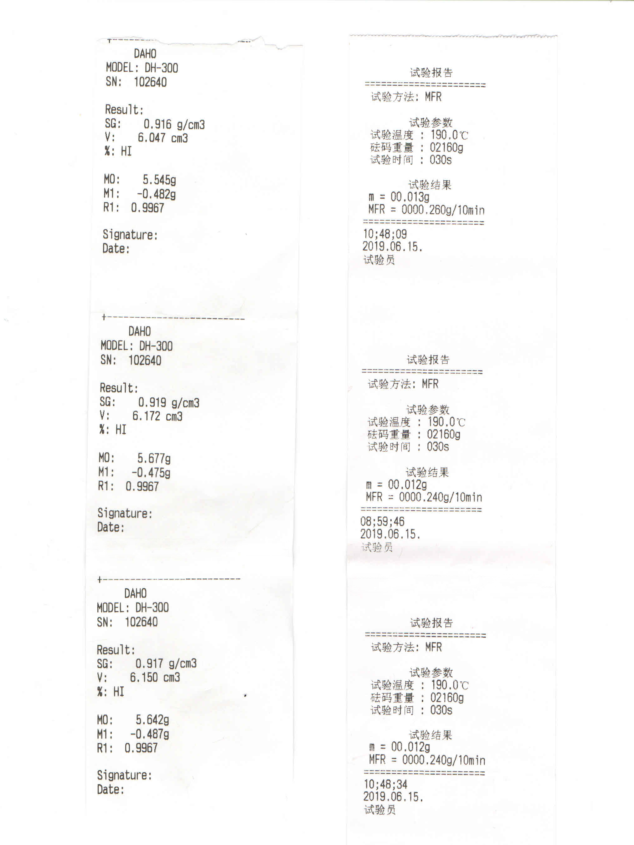 6月11日,海門普適的陳小姐聯(lián)系到我們,表明了公司的需求:測(cè)試PE塑料的熔體流動(dòng)性與密度,精度沒有特別要求,經(jīng)濟(jì)實(shí)用就行。宏拓根據(jù)客戶需求推薦熔體流動(dòng)速率儀HT-3682V-BA與密度計(jì)DH-300,發(fā)了一些相關(guān)資料參數(shù)后,客戶表示儀器功能與參數(shù)都沒問題,主要擔(dān)心測(cè)試不精準(zhǔn),經(jīng)過幾番溝通,最終決定先郵寄一些樣品過來測(cè)試,數(shù)據(jù)準(zhǔn)確的話再考慮采購(gòu)。幾天后,收到客戶寄來了一大包PE塑料樣品,當(dāng)天并安排了測(cè)試,測(cè)試結(jié)果如下: